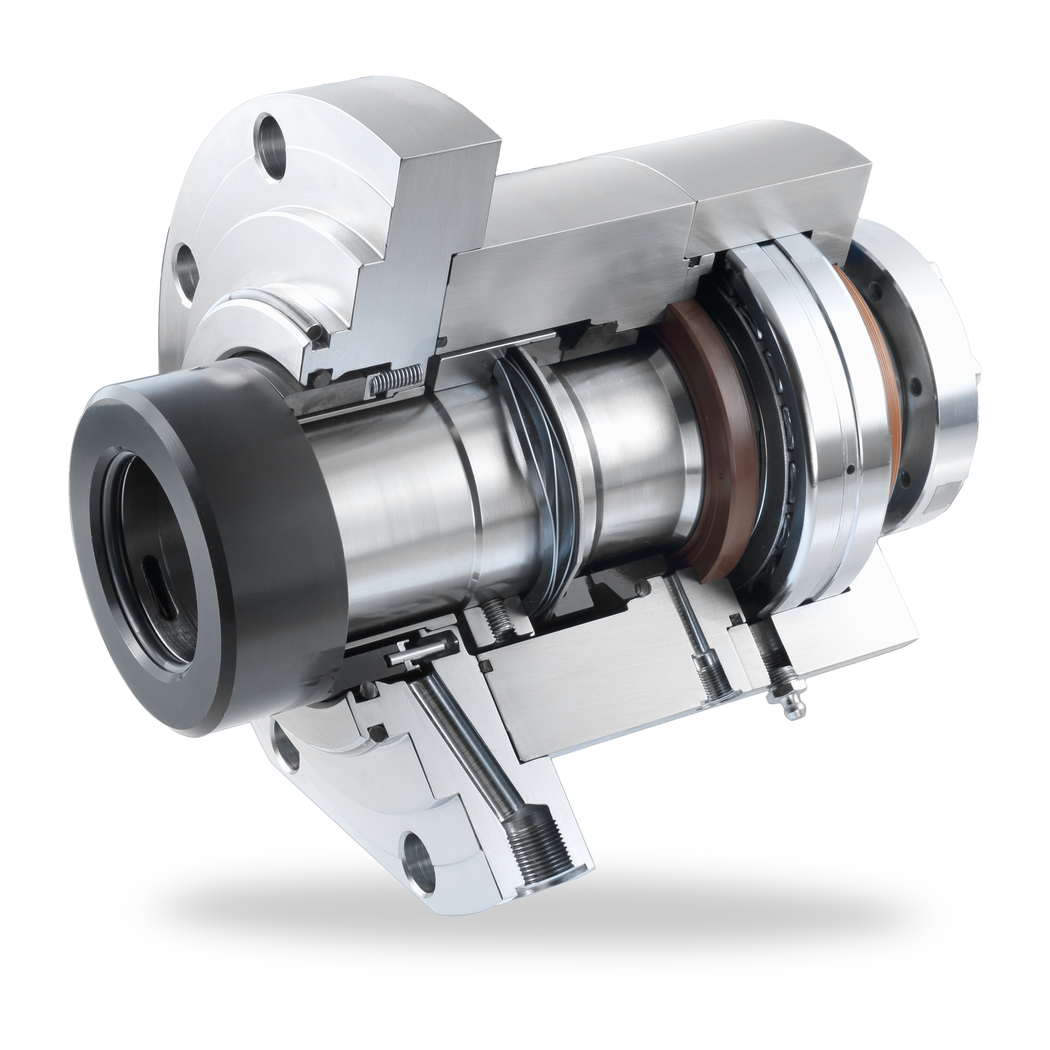 HSMR34 ist eine doppeltwirkende flüssigkeitsgeschmierte Gleitringdichtung. Als Standardwerkstoff kommt Siliciumcarbid (SiC) in Hart/Hart-Paarung zum Einsatz. SeccoMix®R ist eine trockenlaufende und mit Stickstoff gesperrte Doppeldichtung mit Hart/Weich-Paarung. Sie ist optional ebenfalls mit SiC/SiC-Paarung erhältlich. Beide Gleitringdichtungen sind für den Einsatz in Rührern, Mischern, Knetern, Trocknern und weiteren Sondermaschinen hervorragend geeignet.